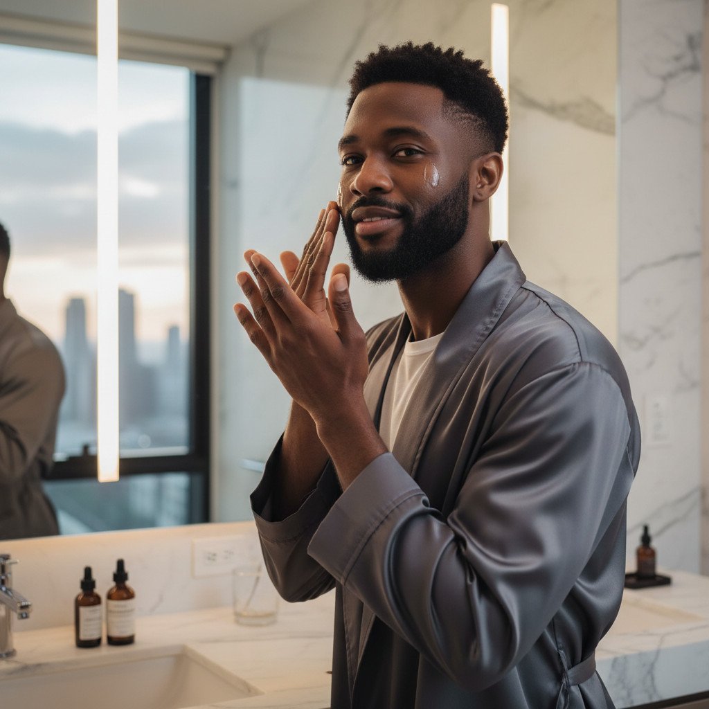 Absolutely. Many of the principles in this routine, such as gentle cleansing, hydration, and reducing inflammation (niacinamide), are beneficial for managing razor bumps and the dark marks they often leave behind. Using a retinoid can also help prevent ingrown hairs. However, for specific razor bump prevention strategies, you might need to adjust your shaving technique. Explore our comprehensive guide on Razor Bumps for Black Men.